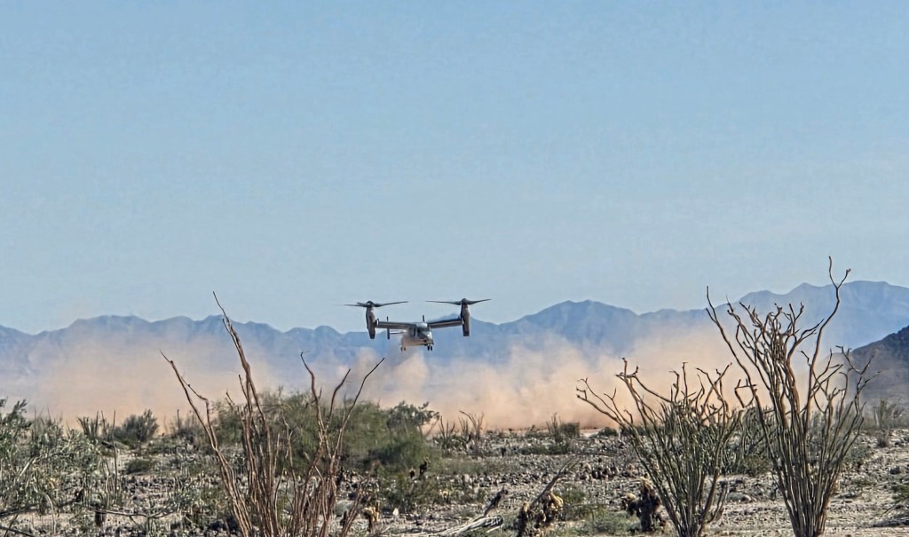 There is so much desert to explore. We’ve gone Jeeping with new friends several times. Some highlights include Picacho and American Girl mines, Valley of Names, Mittry Lake Wildlife Area, a couple of wild burros and watching an Osprey practice taking off and landing in the desert. So cool! We are near the Marine Air Station, so we see all kinds of aircraft going over.