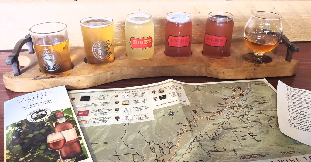 By now it was lunchtime and we knew exactly where we were headed: Big B’s Delicious Orchards. There is a lot going on here, and it’s all good. It’s a farm and orchard where you can drink hard cider, eat good food, camp in the orchard, listen to live music, play on giant swings, pick your own fruit and veggies, buy locally made or grown products and have a swell time while you’re at it. They have great festivals as well. This trip we split a flight of ciders and had lunch at the bar since it was raining lightly outside. I love the tamales, and Scott loves the BBQ pulled pork.